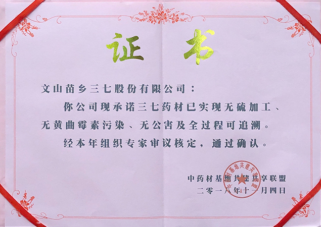 11月3日-5日第六届中药材基地共建共享联盟交流大会于广州举办,苗乡三七获评为首批中药材“三无一全”品牌基地,即无硫加工、无黄曲霉素污染、无公害药材生产、全程可控可追溯,这是此次会议三七品类的唯一获评者。