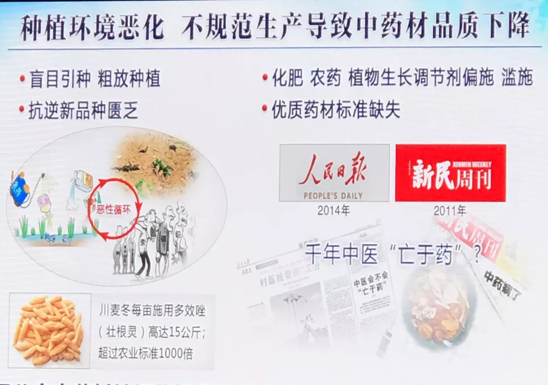 会上强调因盲目引种、粗放种植,抗逆新品种匮乏,化肥农药滥用等问题,导致现今中药材品质下降,这已成为中药材行业面临的重要问题。