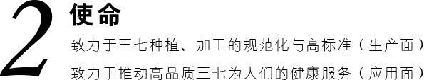 苗乡立志让三七走向世界,通过种植、加工出高效、安全、便利的高品质三七,为人们的健康服务,并改善当地经济与社会。通过对三七全产业链的建设,创新并强化影响产业有效、安全、持续发展的关键环节,让其平行领先②于行业;构建良好的三七产业生态环境,实现三七从种源-田间-车间-用户全面可控管理;建立独特而完善的核心竞争优势,保障用户能使用优质、可信的三七产品,并促进三七产业健康持续的发展。